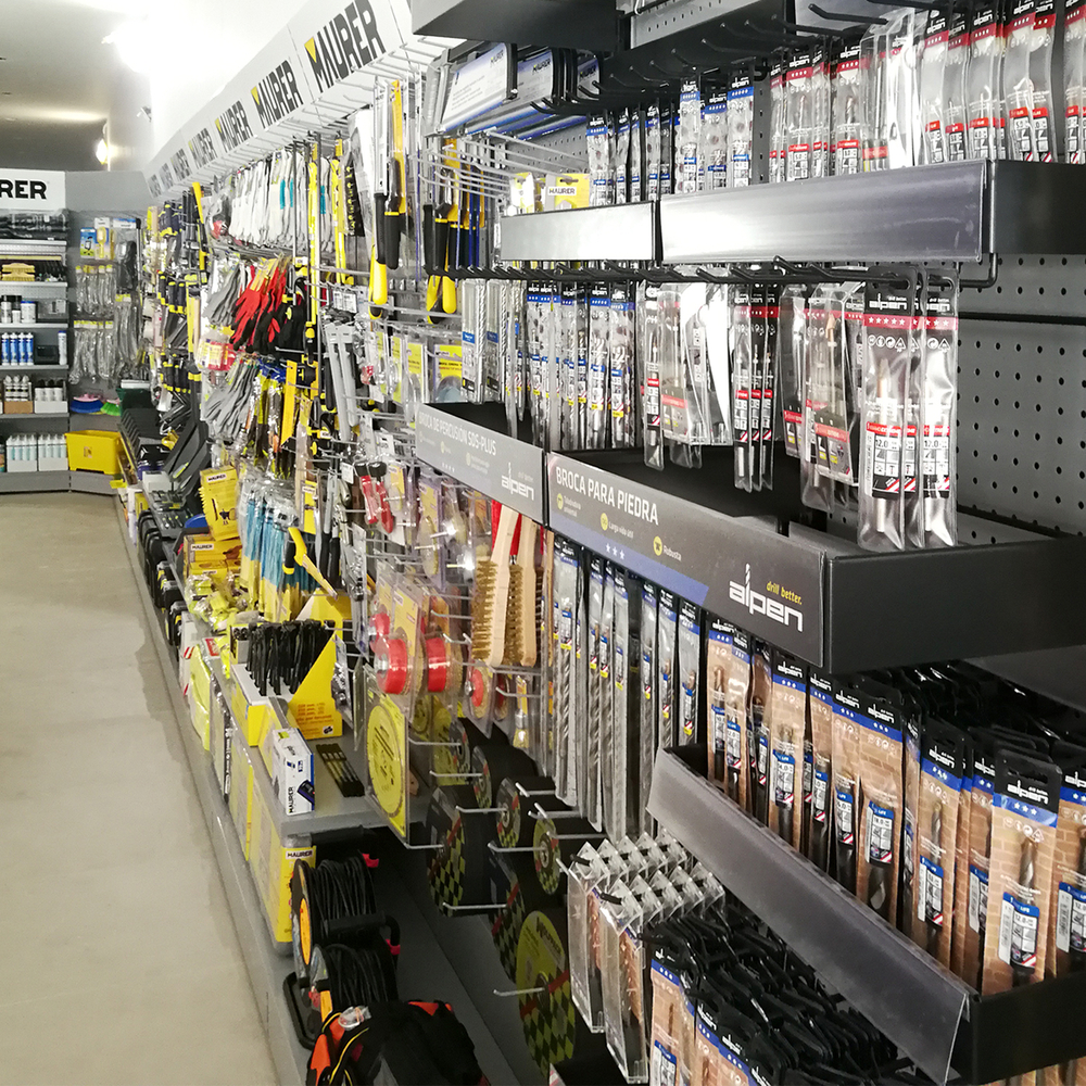 - Metros lineales de expositores: 11 lineales El cliente, asesorado por nuestro equipo de implantaciones, opta por surtido muy variado que abarca desde herramientas y bricolaje hasta ferretería doméstica, pasando por, electricidad básica y fontanería, menaje y jardín.