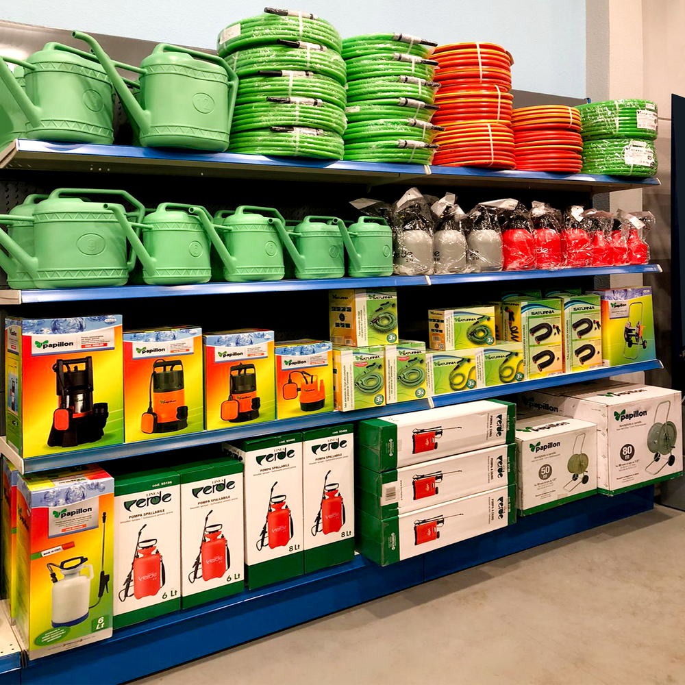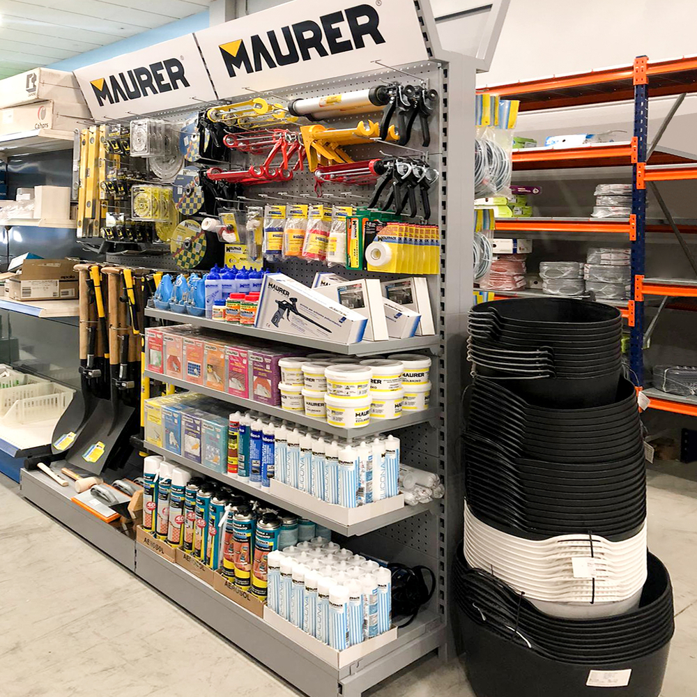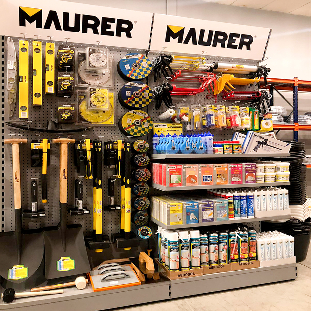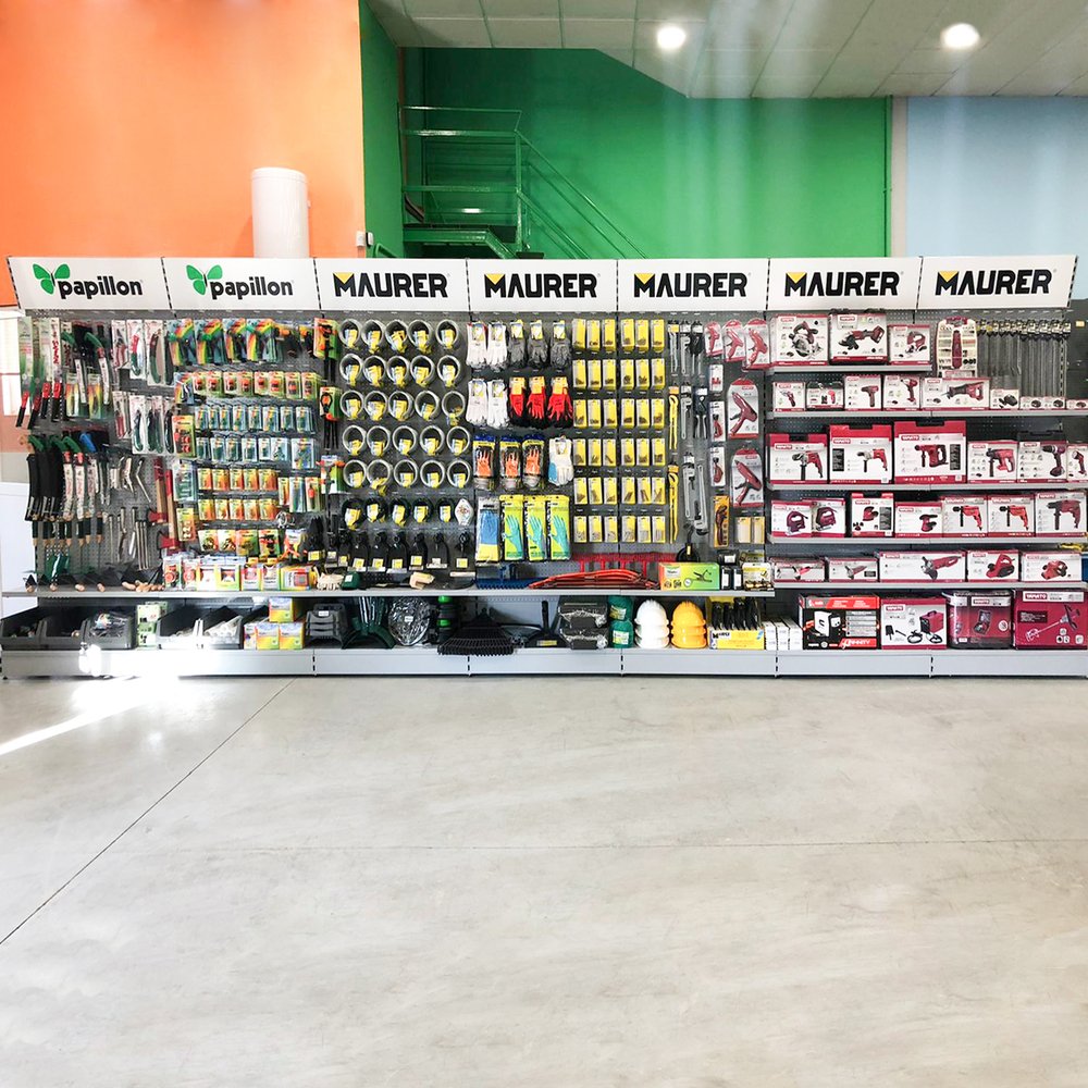 - Metros lineales de expositores: 14 lineales El cliente, asesorado por nuestro equipo de implantaciones, opta por surtido muy variado que abarca desde herramientas y bricolaje hasta ferretería doméstica, pasando por, electricidad básica y fontanería, menaje y jardín.