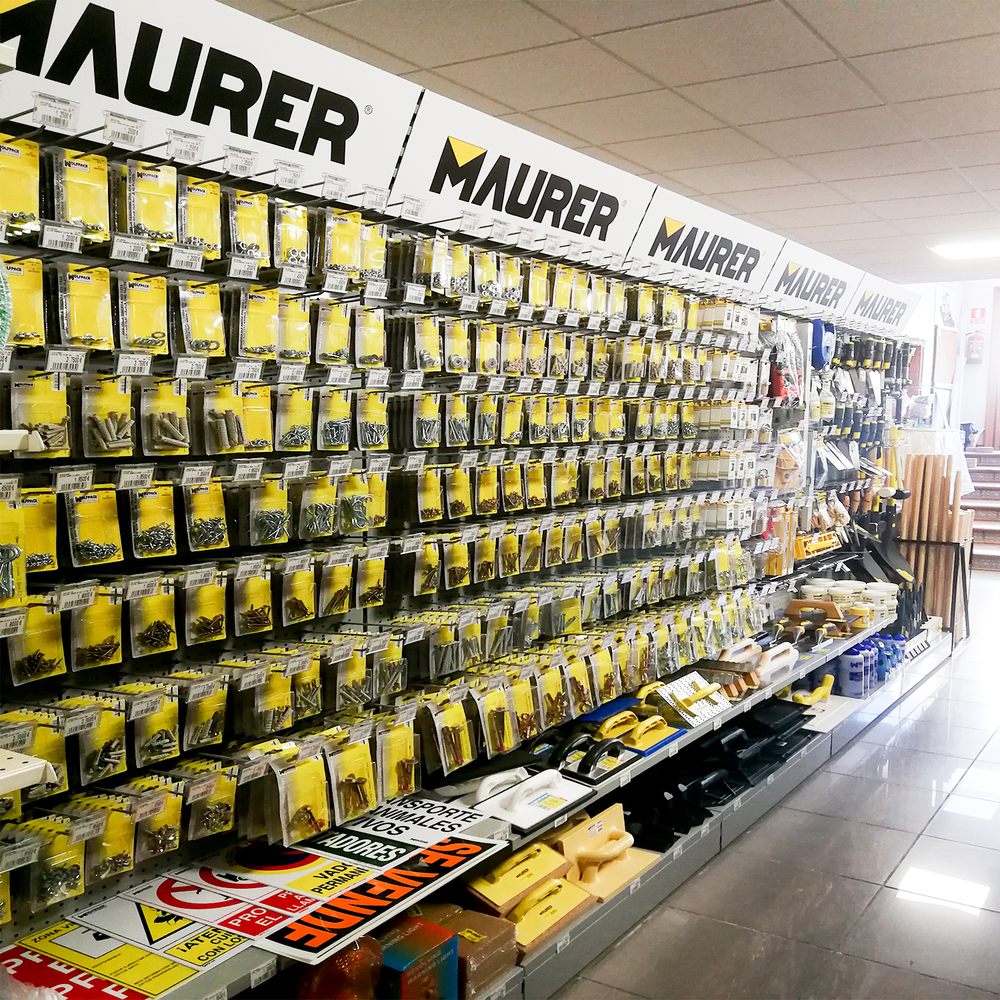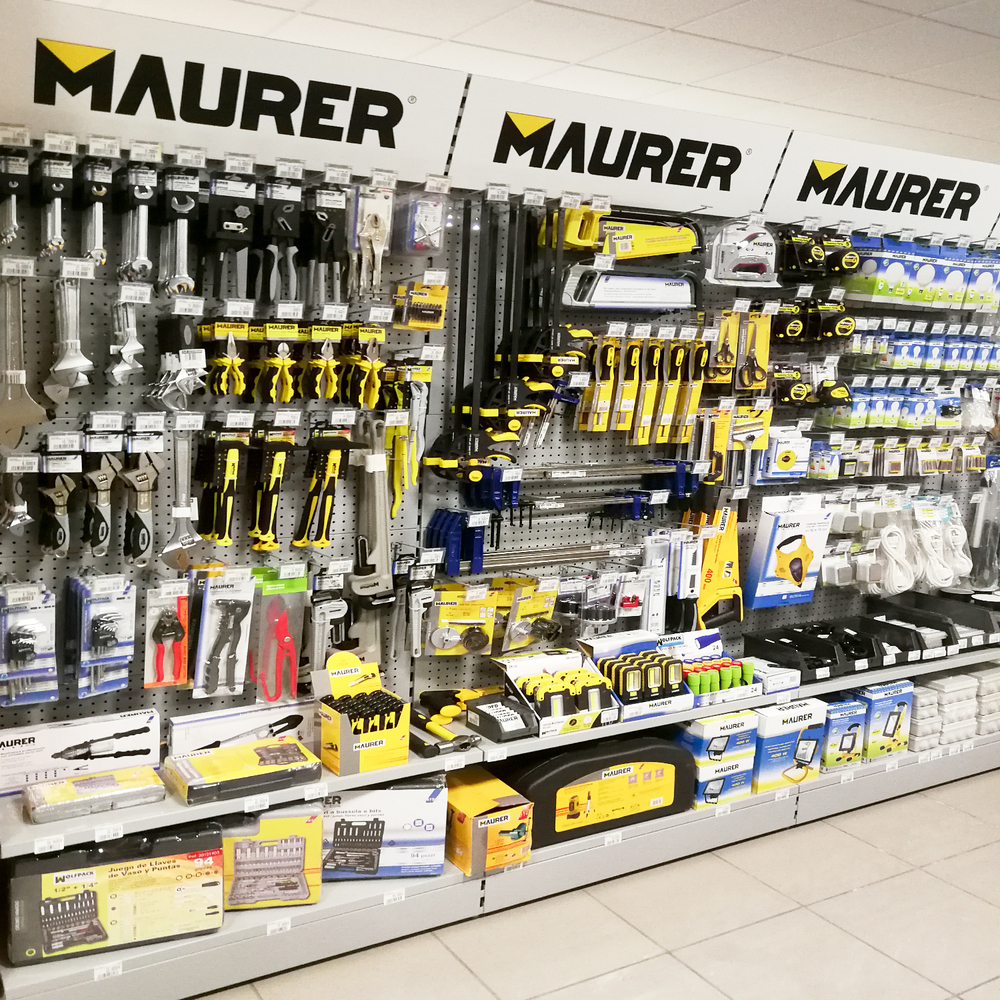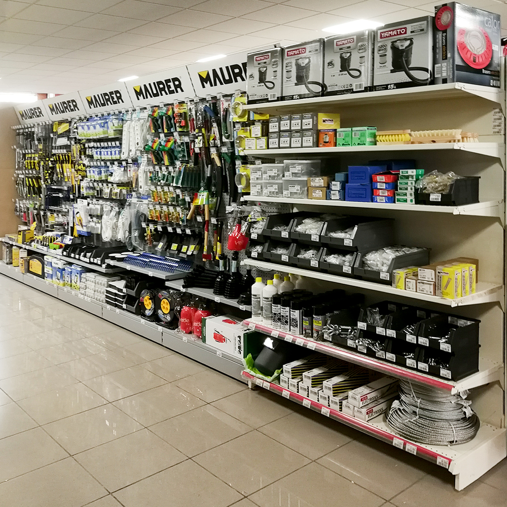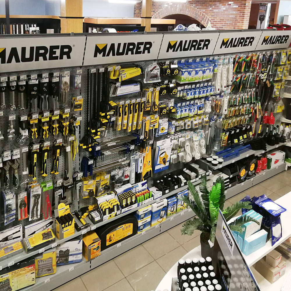 - Metros lineales de expositores: 77 lineales El cliente, asesorado por nuestro equipo de implantaciones, opta por surtido muy variado que abarca desde herramientas y bricolaje hasta ferretería doméstica, pasando por, electricidad básica y fontanería, menaje y jardín.