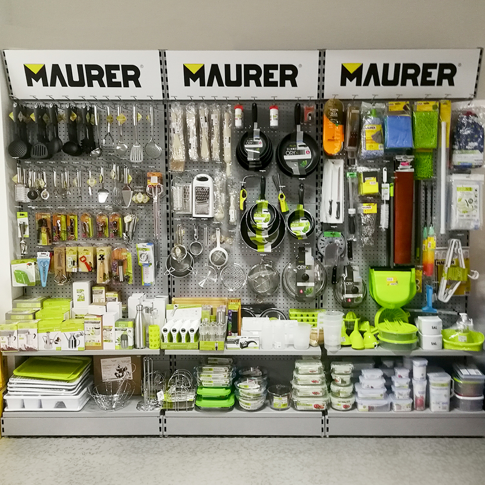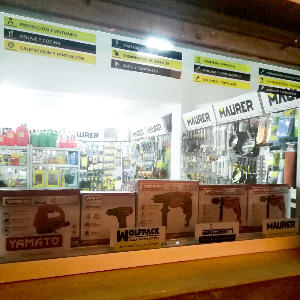 - Metros lineales de expositores: 34 lineales El cliente, asesorado por nuestro equipo de implantaciones, opta por surtido muy variado que abarca desde herramientas y bricolaje hasta ferretería doméstica, pasando por, electricidad básica y fontanería, menaje y jardín.