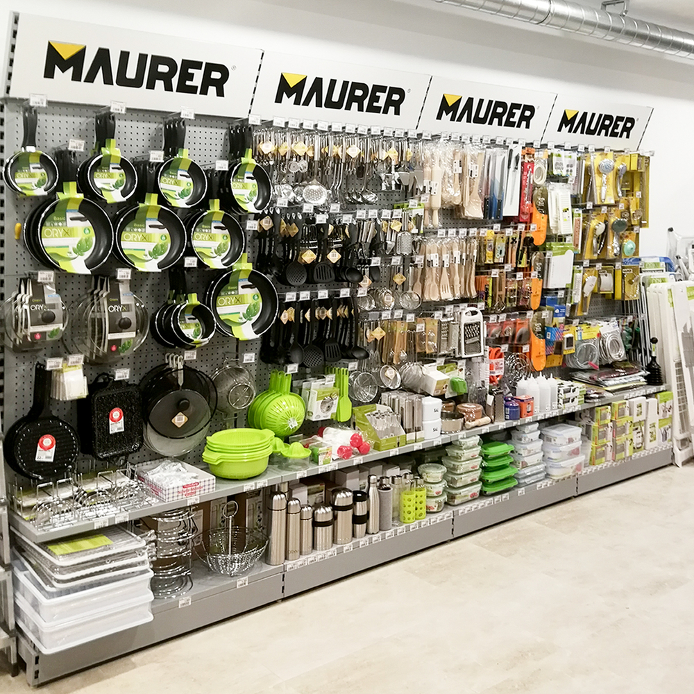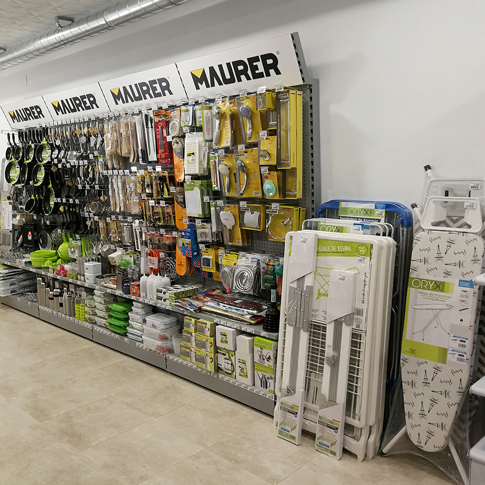 - Metros lineales de expositores: 14 lineales El cliente, asesorado por nuestro equipo de implantaciones, opta por surtido muy variado que abarca desde herramientas y bricolaje hasta ferretería doméstica, pasando por, electricidad básica y fontanería, menaje y jardín.