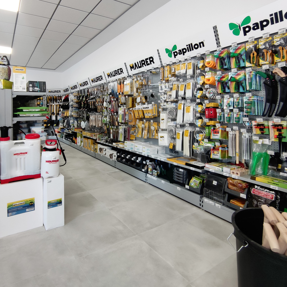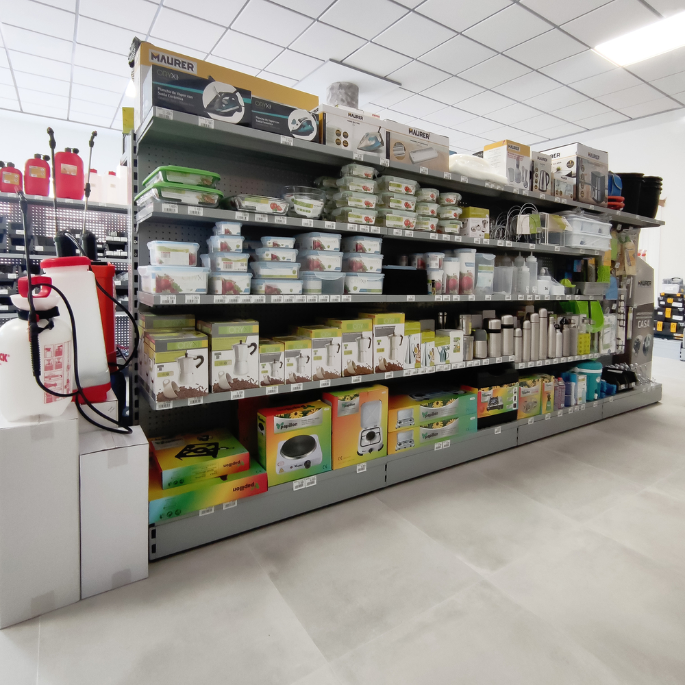 23 lineales.El cliente, asesorado por nuestro equipo de implantaciones, opta por surtido muy variado que abarca desde herramientas y bricolaje, pasando por electricidad básica y fontanería, menaje y jardín.