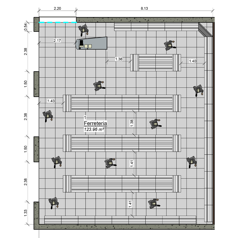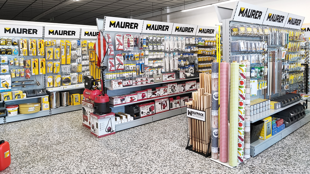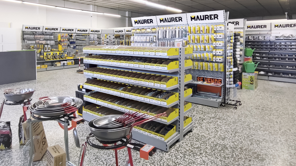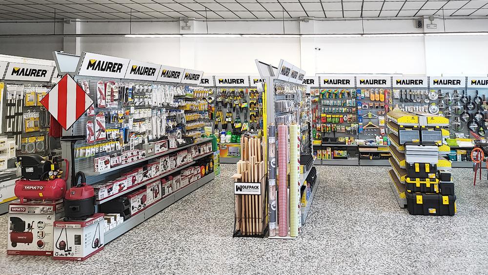 44 lineales.El cliente, asesorado por nuestro equipo de implantaciones, opta por surtido muy variado que abarca desde herramientas y bricolaje, pasando por electricidad básica y fontanería, menaje y jardín.