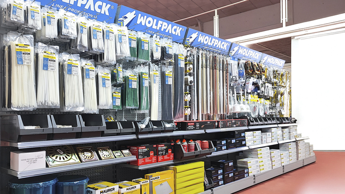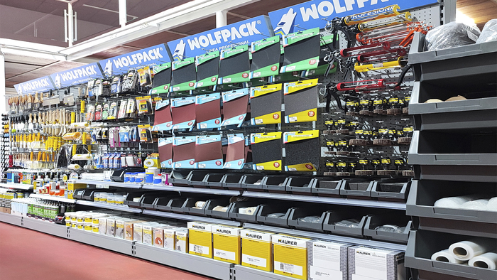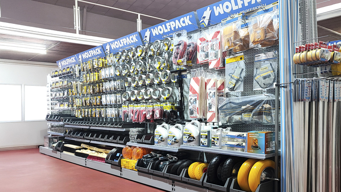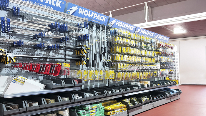 El cliente, asesorado por nuestro equipo de implantaciones, opta por surtido muy variado que abarca desde herramientas y bricolaje, pasando por electricidad básica y fontanería, menaje y jardín.